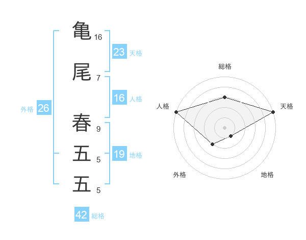 亀尾 春五五さんの総格は42画の3点!