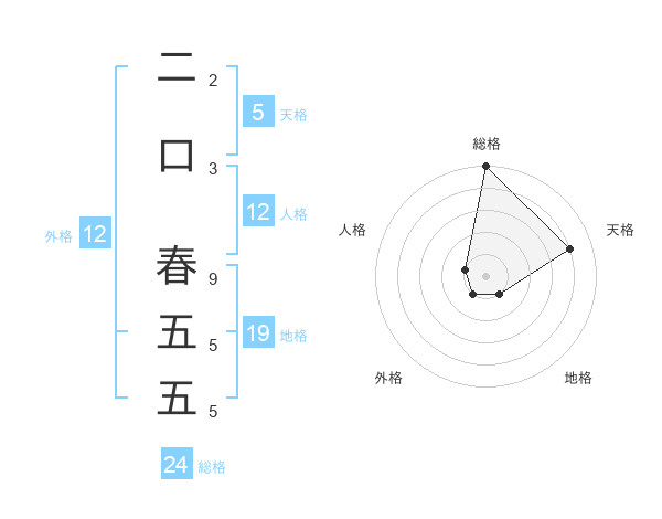 二口 春五五さんの総格は24画の5点!