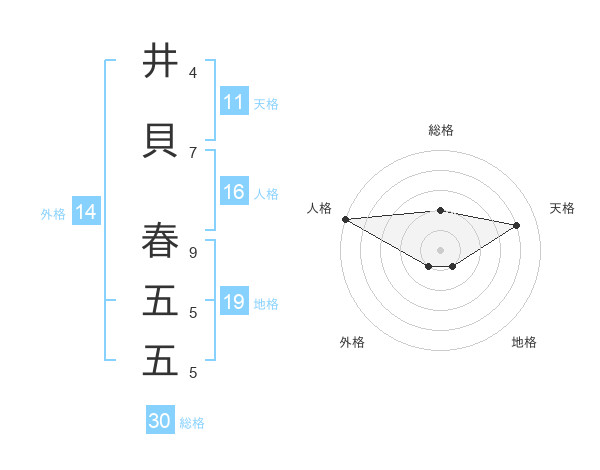 井貝 春五五さんの天格は11画の4点!