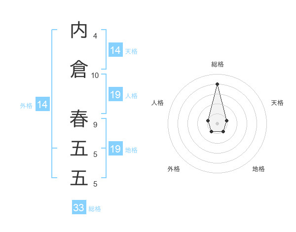 内倉 春五五さんを姓名の画数から五運を鑑定