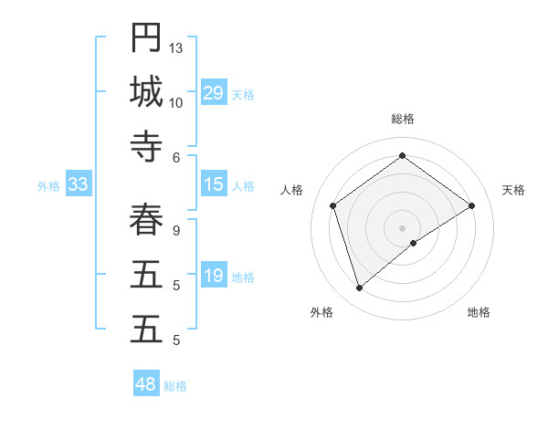 円城寺 春五五さんの総格は48画の4点!