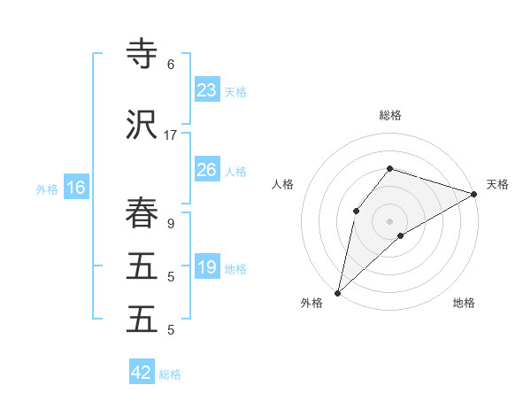寺沢 春五五さんの外格は16画の5点!