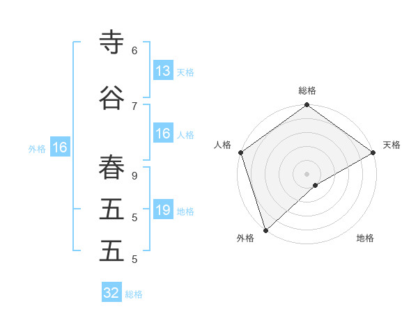 寺谷 春五五さんの天格は13画の5点!