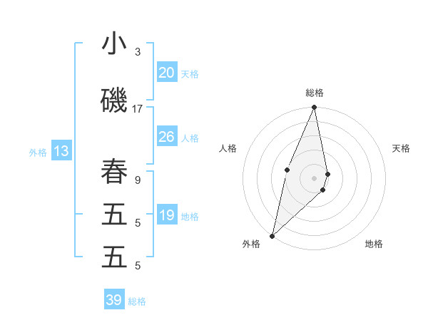 小磯 春五五さんの外格は13画の5点!