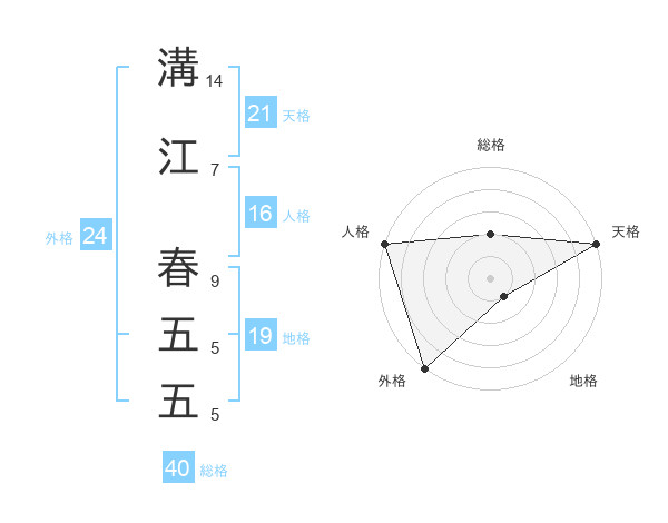 溝江 春五五さんの天格は21画の5点!