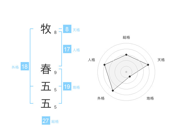 牧 春五五さんの天格は8画の4点!