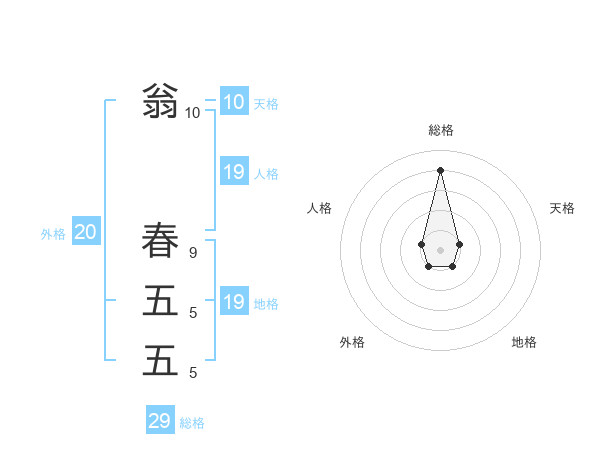 翁 春五五さんの総格は29画の4点!
