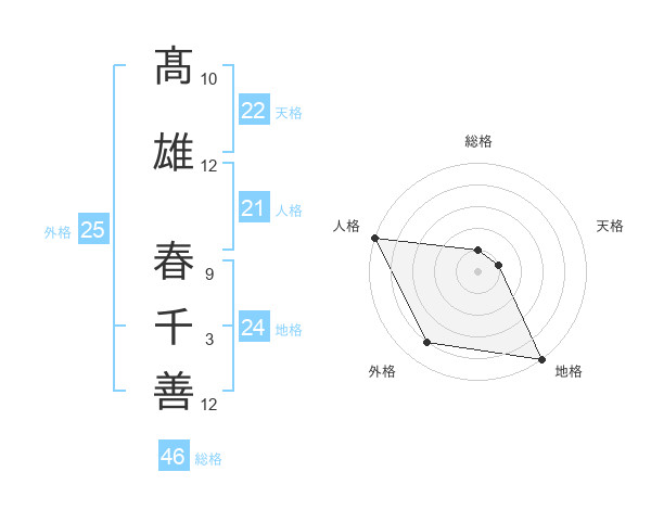髙雄 春千善さんを姓名の画数から五運を鑑定