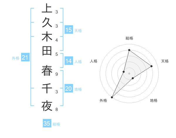 上久木田 春千夜さんの外格は21画の5点!
