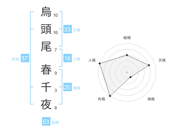 烏頭尾 春千夜さんを姓名の画数から五運を鑑定