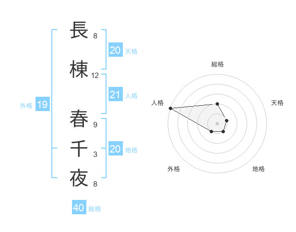長棟 春千夜さんの地格は20画の1点!