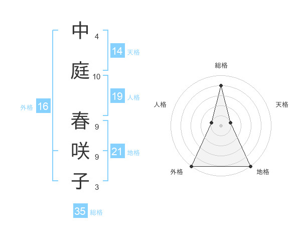 中庭 春咲子さんを姓名の画数から五運を鑑定