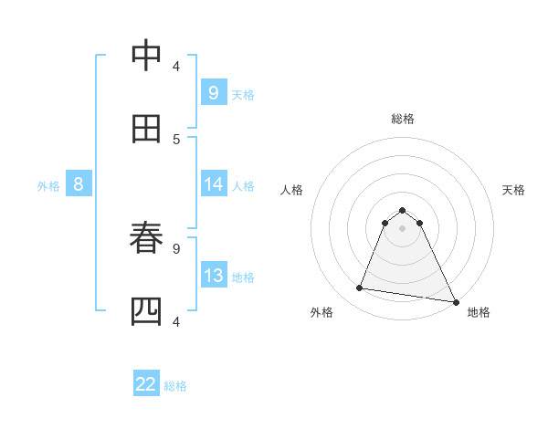 中田 春四さんの地格は13画の5点!