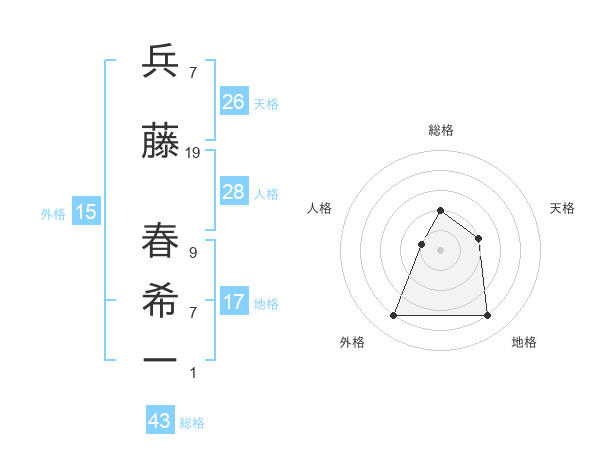 兵藤 春希ーさんを姓名の画数から五運を鑑定