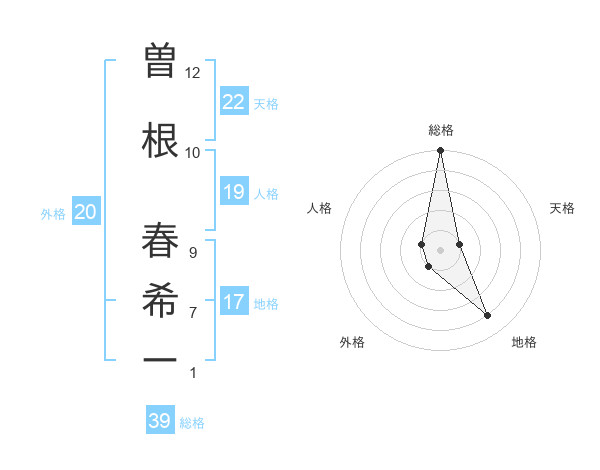 曽根 春希ーさんの総格は39画の5点!