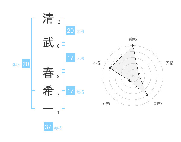 清武 春希ーさんを姓名の画数から五運を鑑定