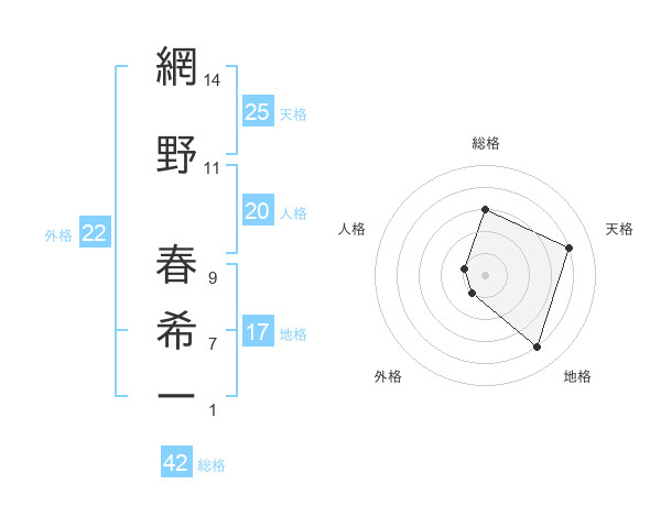 網野 春希ーさんの総格は42画の3点
