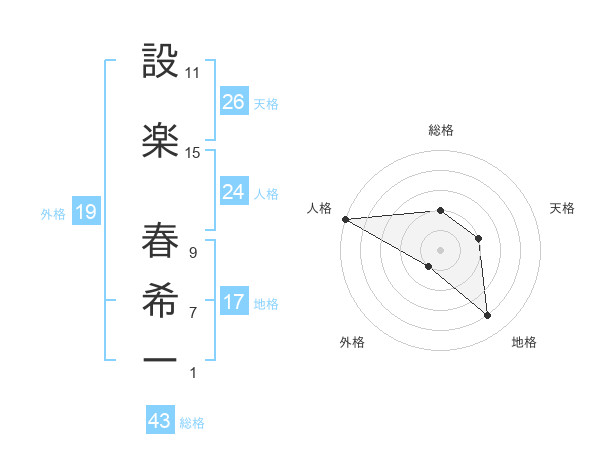 設楽 春希ーさんの外格は19画の1点!