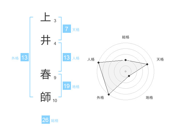 上井 春師さんの外格は13画の5点!