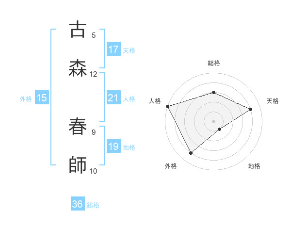 古森 春師さんの天格は17画の4点!