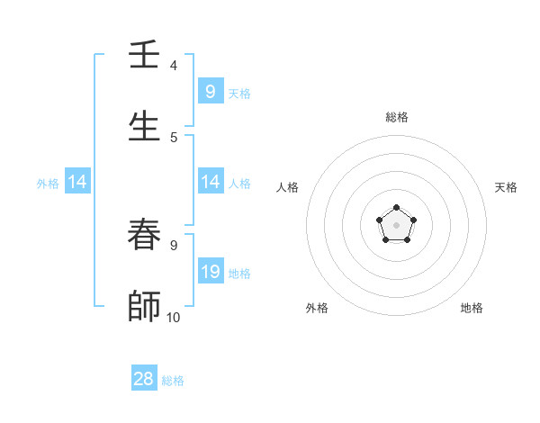 壬生 春師さんの総格は28画の1点!