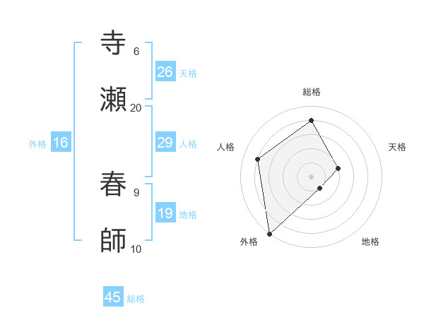 寺瀬 春師さんの総格は45画の4点!