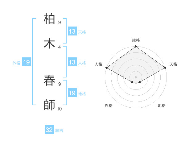 柏木 春師さんの天格は13画の5点!