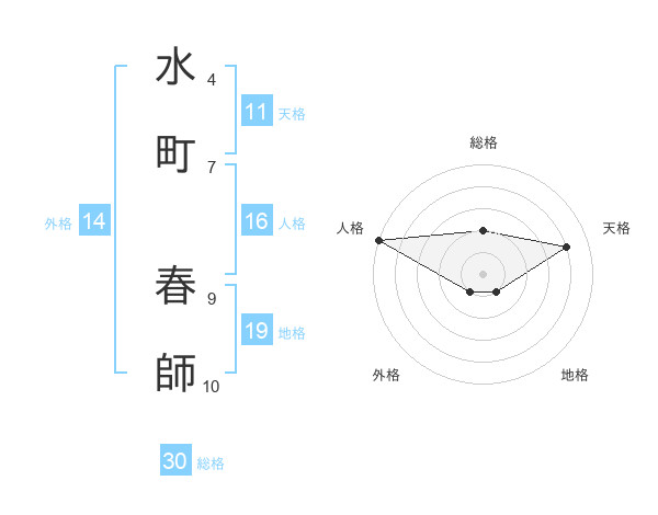 水町 春師さんの天格は11画の4点!