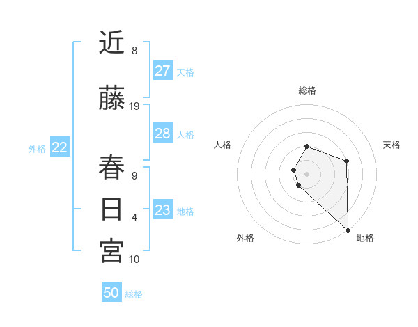 近藤 春日宮さんを姓名の画数から五運を鑑定