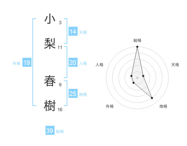 小梨 春樹さんを姓名の画数から五運を鑑定