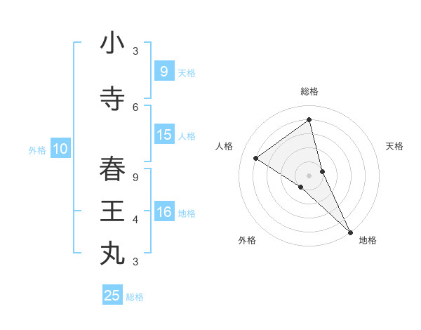 小寺 春王丸さんの総格は25画の4点!