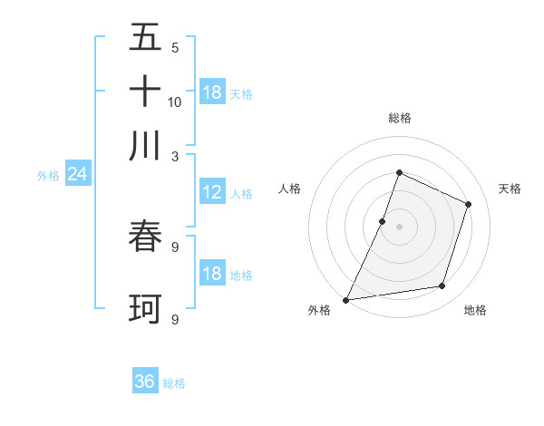 五十川 春珂さんを姓名の画数から五運を鑑定