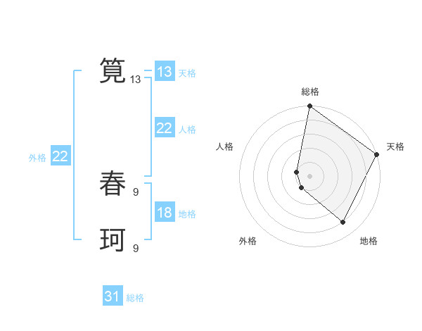 筧 春珂さんの総格は31画の5点!