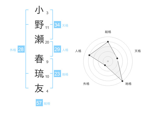 小野瀬 春琉友さんを姓名の画数から五運を鑑定