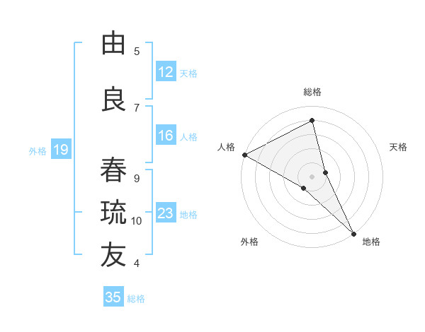 由良 春琉友さんを姓名の画数から五運を鑑定