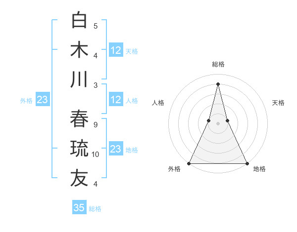 白木川 春琉友さんの外格は23画の5点!