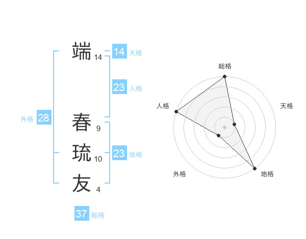 端 春琉友さんの総格は37画の5点!