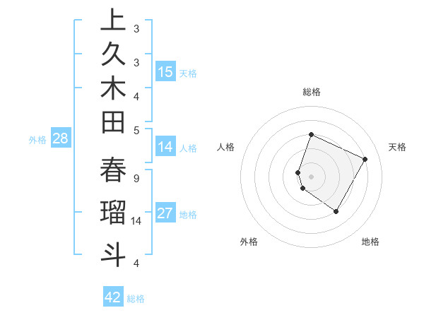上久木田 春瑠斗さんを姓名の画数から五運を鑑定