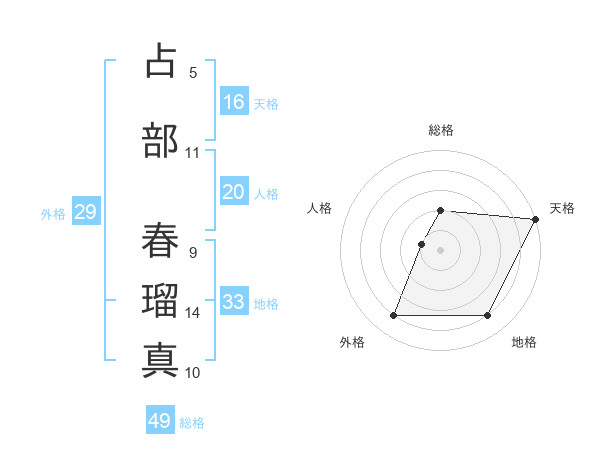 占部 春瑠真さんを姓名の画数から五運を鑑定