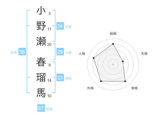 小野瀬 春瑠馬さんを姓名の画数から五運を鑑定