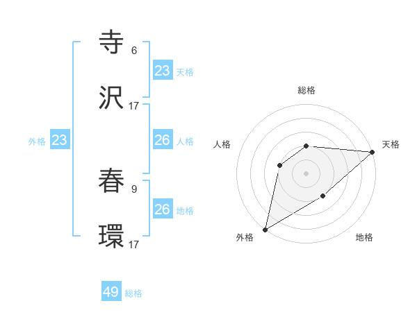 寺沢 春環さんを姓名の画数から五運を鑑定