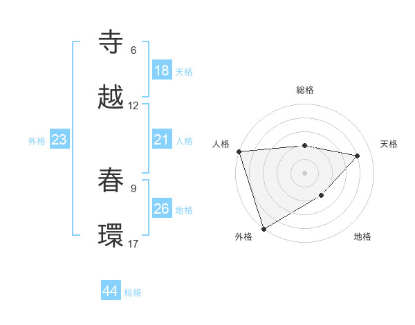 寺越 春環さんの外格は23画の5点!