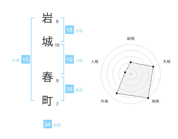 岩城 春町さんの総格は34画の2点!