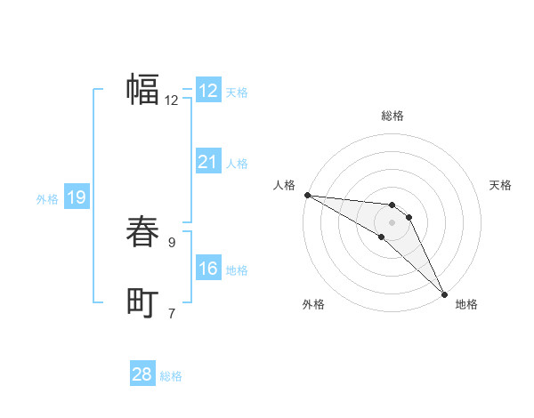 幅 春町さんの総格は28画の1点!
