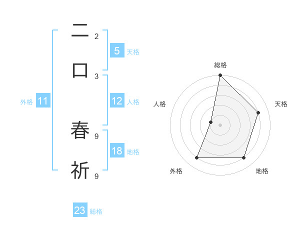 二口 春祈さんの総格は23画の5点!