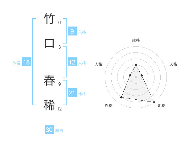 竹口 春稀さんの総格は30画の2点!