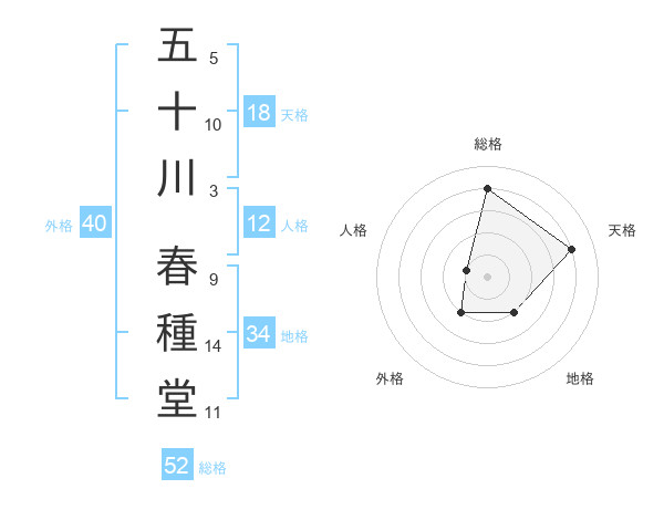 五十川 春種堂さんを姓名の画数から五運を鑑定
