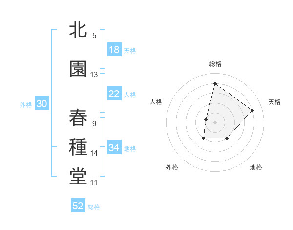 北園 春種堂さんの総格は52画の4点!