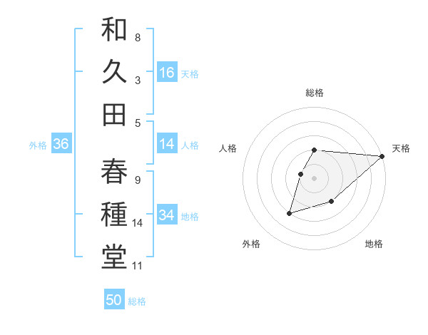 和久田 春種堂さんの総格は50画の2点!
