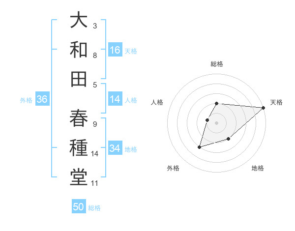 大和田 春種堂さんの総格は50画の2点!